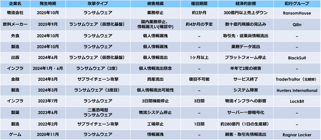 参考:アサヒ攻撃で露呈したDXの落とし穴|2025年上半期116件のランサムウェア、KADOKAWA・トヨタなどから学ぶ対策