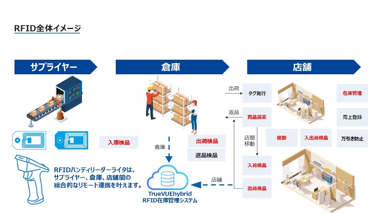 TrueVUE hybrid(トゥルービューハイブリッド)を中心としたRFIDシステムが、株式会社AOKIの展開する「ORIHICA」で導入されました。Johnson Controls社製の本システムの導入により、会計時間の短縮や、検品・棚卸作業の効率化が見込まれます。具体的な導入効果や導入に当たっての課題などをAOKIご担当者様にインタビューさせて頂きましたのでぜひご覧ください。